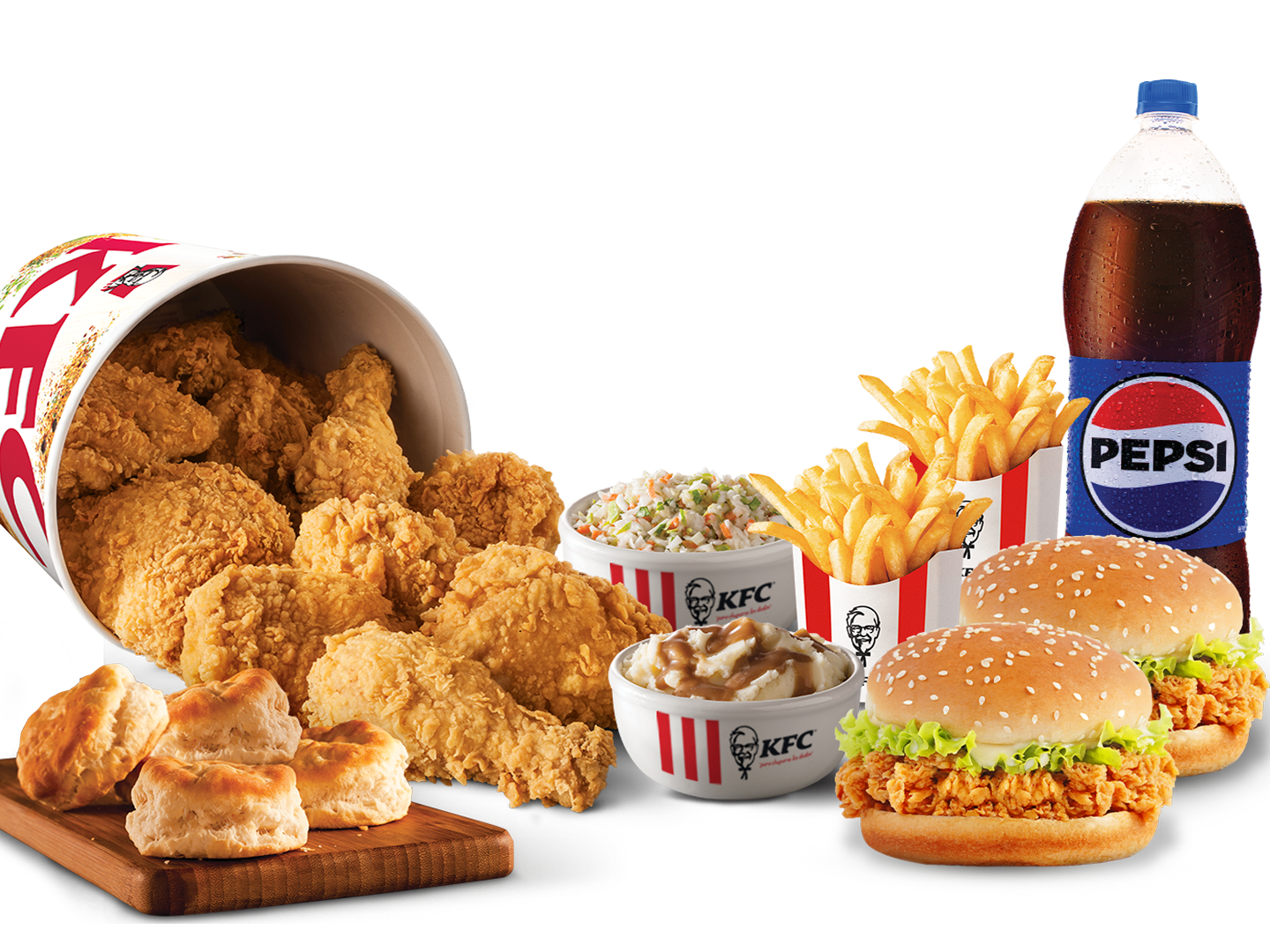8 piezas de pollo de tu receta favorita, 4 complementos, 2 Crispy Sandwich, 4 biscuit, 1 refresco 2 L.